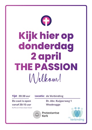 Op donderdagavond 2 april vindt de jaarlijkse editie van The Passion plaats, de muzikale paasvertelling voor iedereen! De Gereformeerde kerk Woubrugge biedt de mogelijkheid om op 2 april de live-uitzending van The Passion (KRO-NCRV, NPO1) op groot scherm mee te kijken.